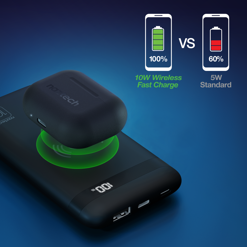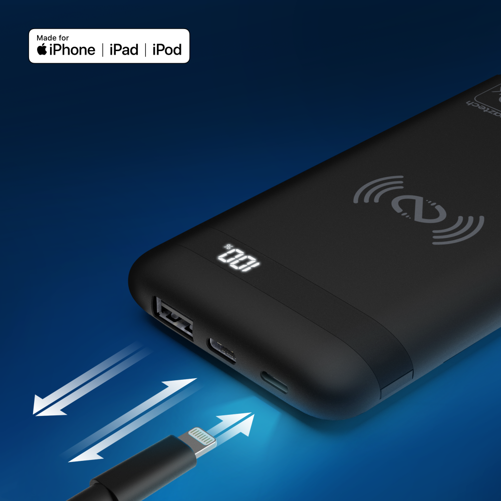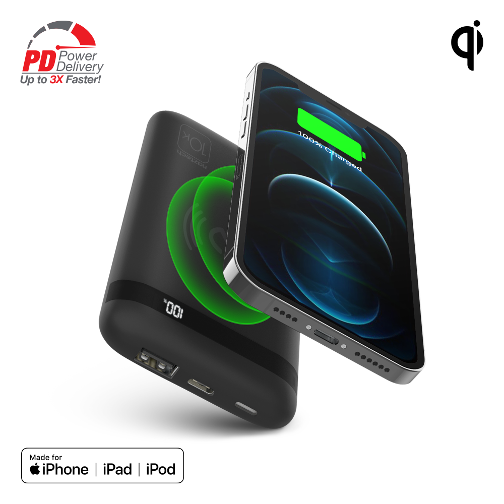 10,000mAh | PowerBolt Wireless Fast Charge Power Bank with MFi Lightning Port | Black