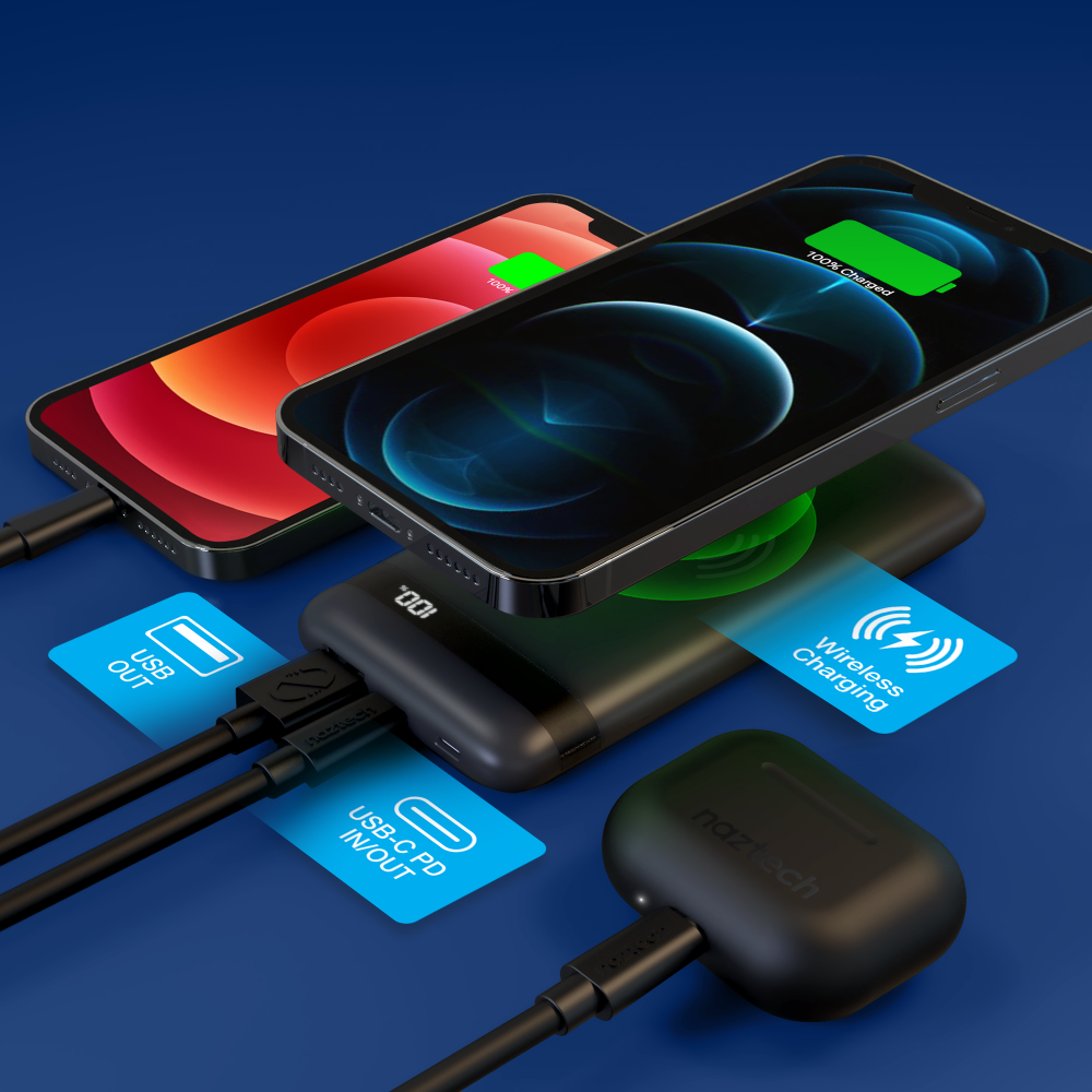 A wireless charging pad wherever you go. Fast charge compatibility with both iPhones and Android smartphones, and MFi certification to ensure safe charging. Dual USB-C and USB outputs with simultaneous Qi wireless power, so you can charge three devices at the same time.