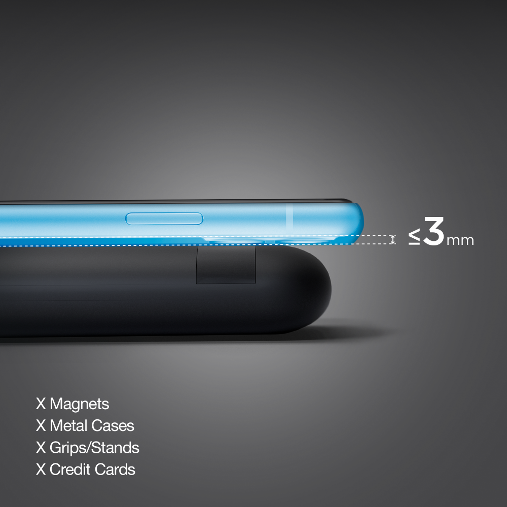 No need to remove your phone from its case every time you need to power up. This charger is designed to work through most protective cases, up to about 3 mm in thickness.