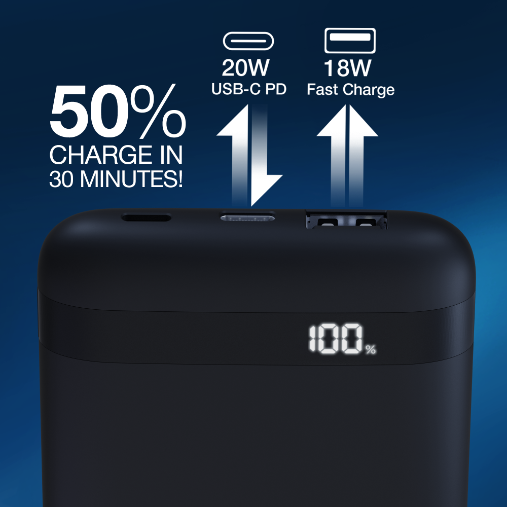 Enhanced with the latest high-speed charging technologies to take even the largest smartphones from 0 to 50% in just 30 minutes.