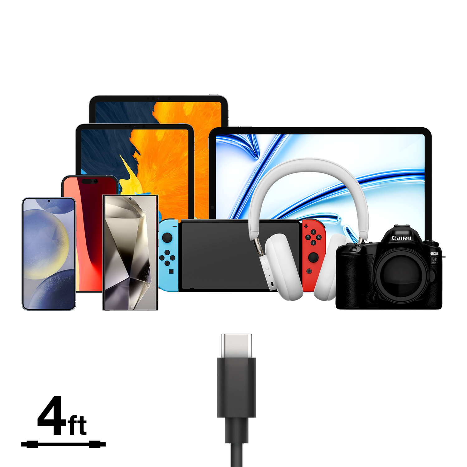 Get started charging right away. Works with all USB-C devices, from phones, tablets, and power banks, to headphones, earbuds, and portable gaming consoles...