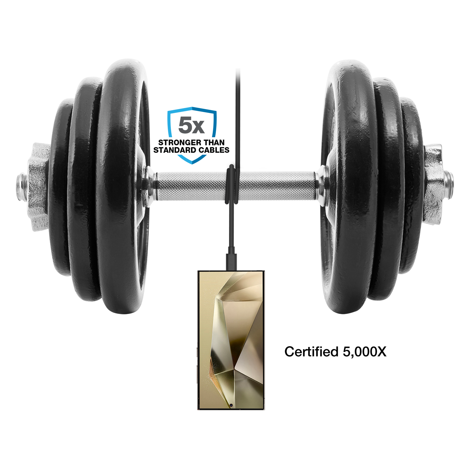 This cable is 5X tougher than any standard-issue options. Reinforced stress points and thick gauge wiring that offer an unrivaled 5,000-bend lifespan.