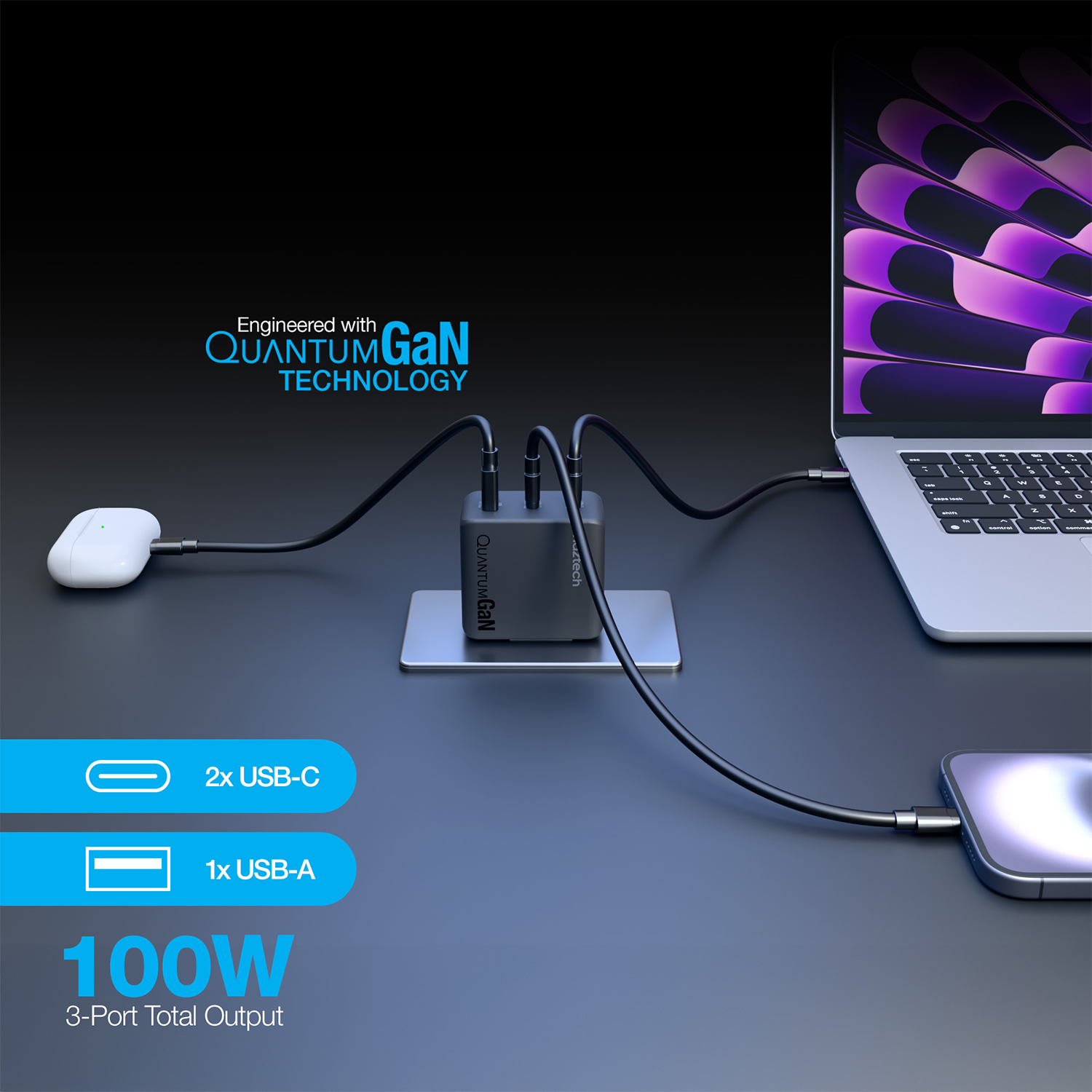 Nexus T100 combines three ports and 100W of power into an ultra-compact design that is 35% smaller than a single-port 96W MacBook Pro charger.