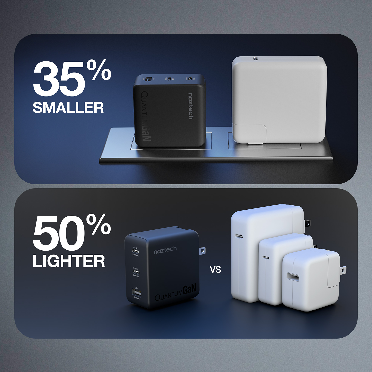Next-gen gallium nitride (GaN) circuitry has enabled us to make Naztech’s smallest, fastest, and most efficient high-power chargers ever.