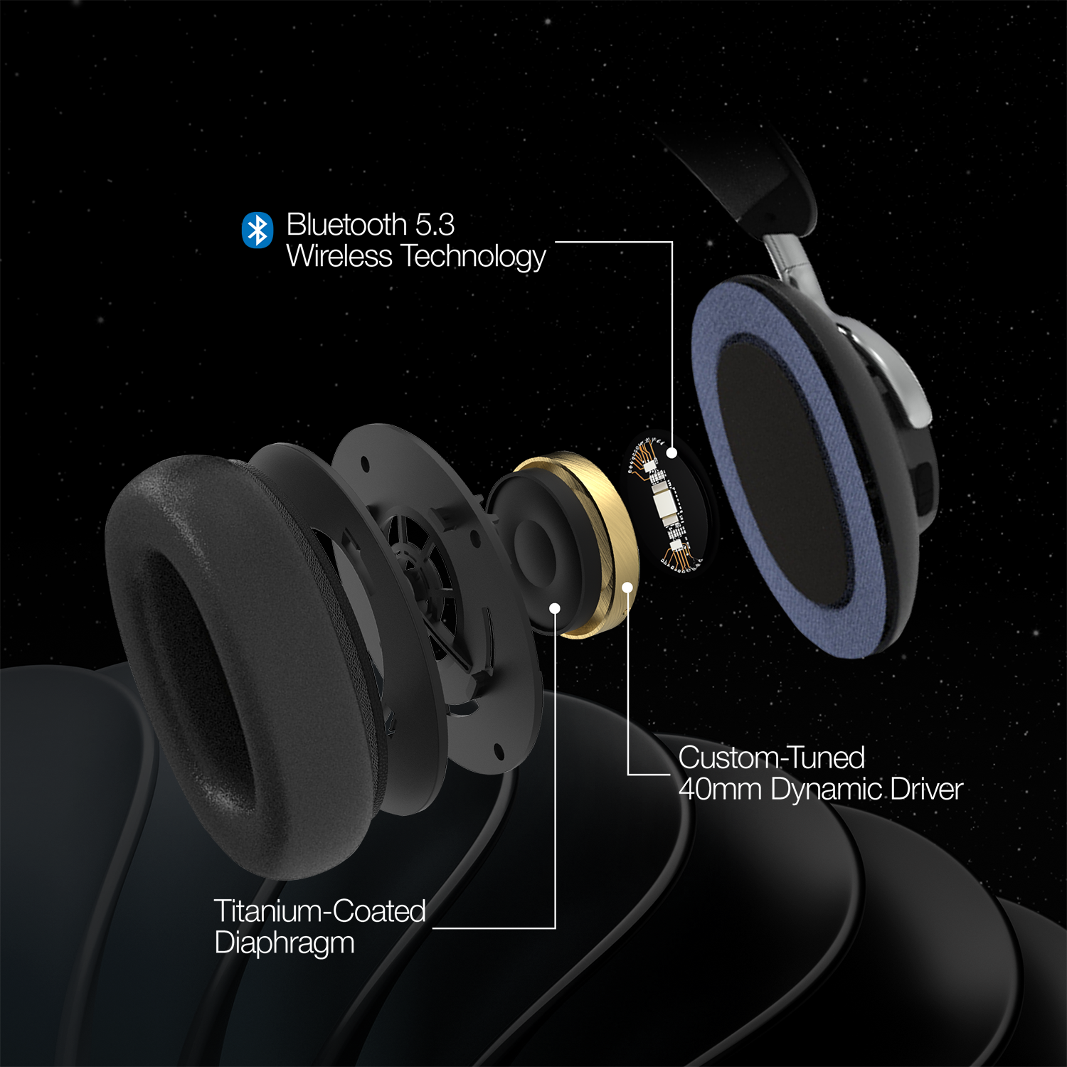 A duo of 40mm dynamic drivers with titanium-coated diaphragms produce high-definition audio with incredible detail, crisp clarity, and deep, rich bass.