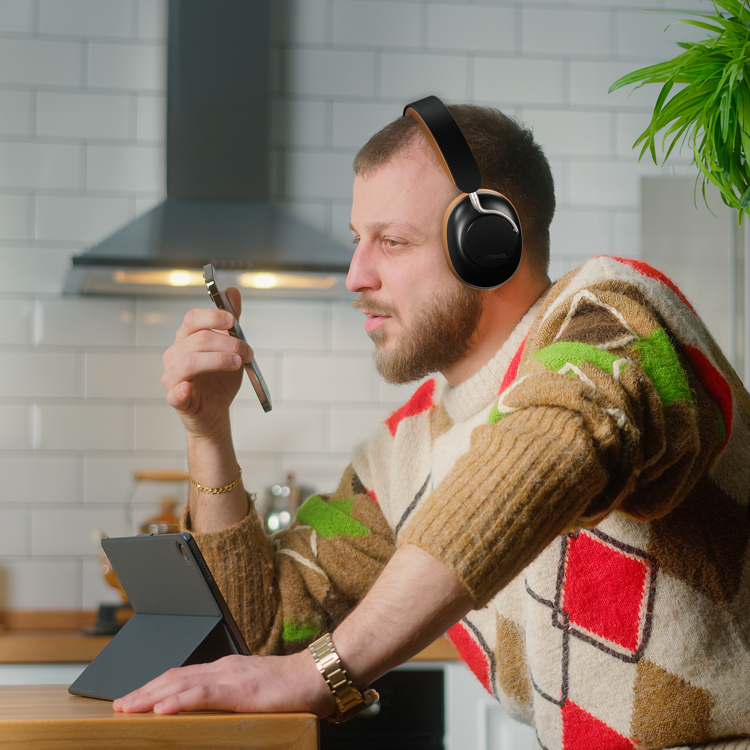 With razor-sharp voice quality, you can show off your new headphones in your next video call or online meeting.