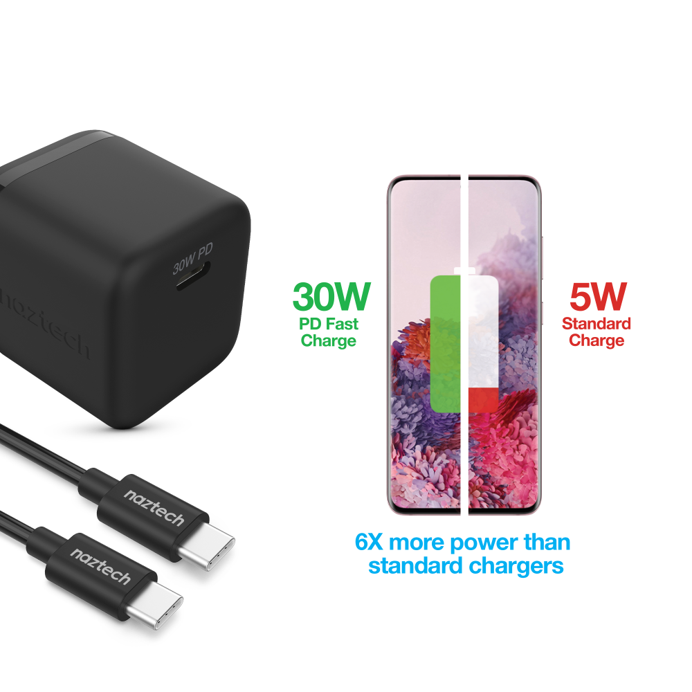This 30W USB-C PD wall charger comes with a 6ft USB-C to USB-C cable — the 2 things your phone needs for the fastest charge. It’s the ultimate high-speed charging solution for home, work, and travel.