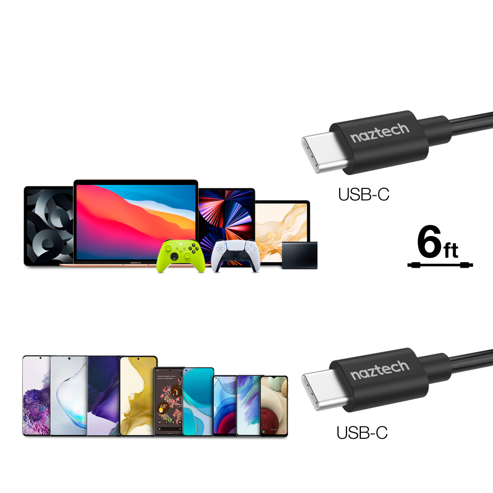 The included USB-C cable fits any devices that fast charge via USB-C: Android phones and tablets, iPad Pro and Mini models, power banks, and even laptops. It can also be used for high-speed data sync between phones, computers, and external hard drives.