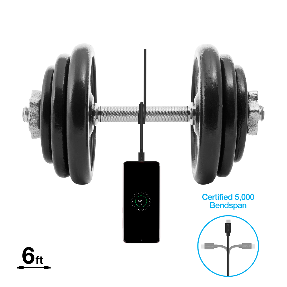 This cable is 5X tougher than any standard-issue options. Reinforced stress points and thick gauge wiring offer an unrivaled 5,000-bend lifespan.