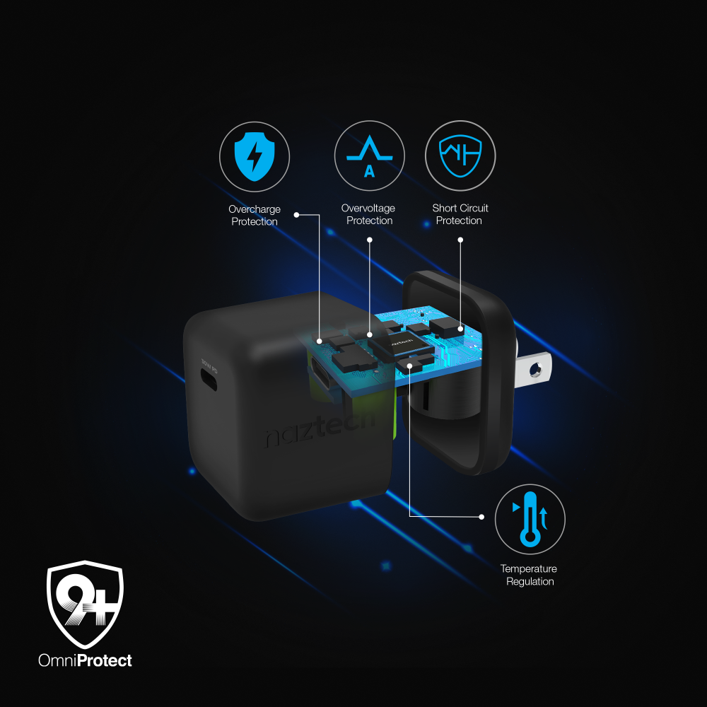 Built-in safeties regulate the charger’s performance to protect you and your devices from dangers like overcurrent, overvoltage, short circuit, and over-temperature.