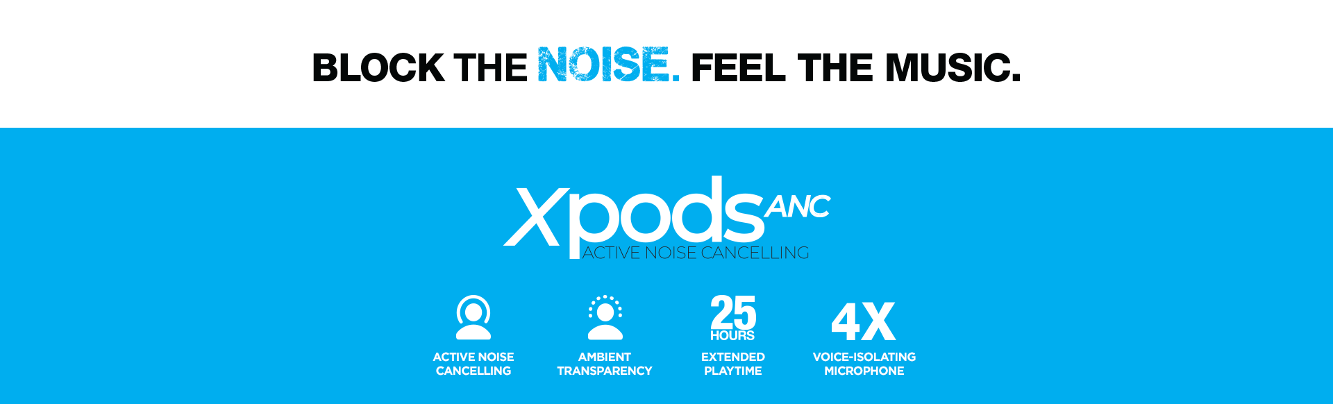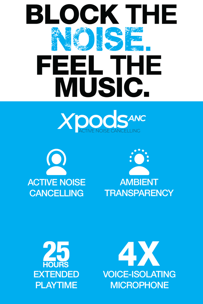 Xpods ANC come with memory foam ear tips in three sizes, so every wearer can find the exact right seal-forming fit.